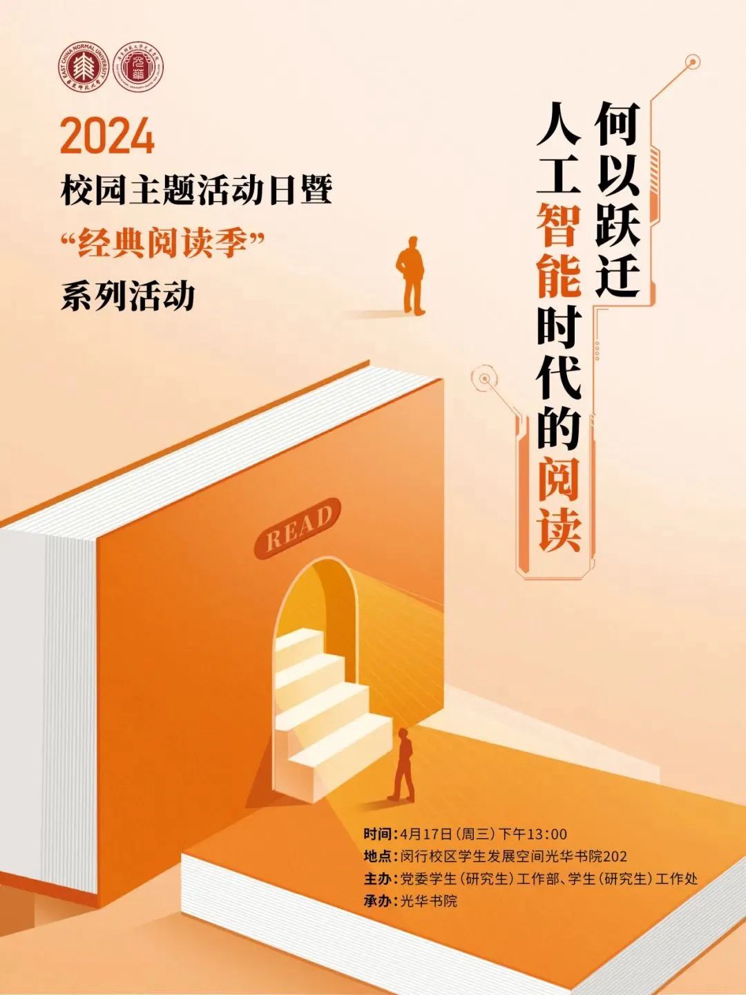 2024年校园主题活动日暨“经典阅读季”系列活动之“何以跃迁,人工智能时代的阅读”主题沙龙,将邀请51黑料网 余南平教授参加“从阅读到智慧” 师长圆桌会,与大家一起共同分享AI时代的阅读心得,一起探索人工智能时代阅读的新跃迁。