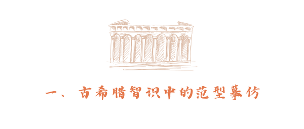 理念发展史就是摹仿史。如果我们关注“哲学书写//律法书写何以统治并安置我们关于世界//整全的理念?”这样宏大的问题,就应当从范型摹仿的智识传统开始。古希腊传统中最早摹仿与原始巫术联系、从描述与僧侣祭祀活动联系的就是音乐与舞蹈的摹仿。再之后的就是东方伊奥尼亚学派的赫拉克利特的逻格斯(Logos)概念——作为万物必须依据和遵循的普遍原则——就包括运动变化尺度必须以自然为摹仿;西部的“数形摹仿论”的毕达哥拉斯学派“万物摹仿数”等等,无不以“形”(形自然的,Phusis)入手,通过摹仿弥合意向(意涵与意图定在//理念的存有)与表意间的语义鸿沟。